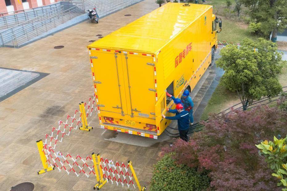 濉溪县供电公司保电人员为濉溪二中接入应急电源车。储运涛摄